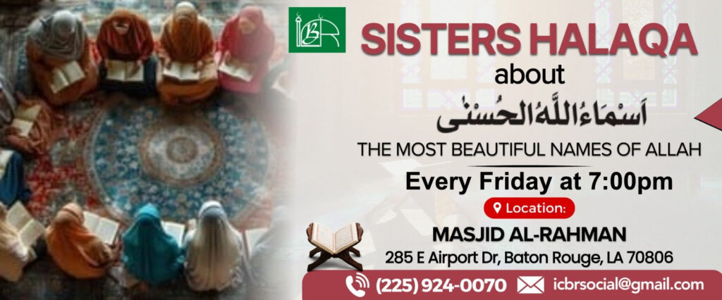 Every Friday after Maghrib Is our Sisters Halaqa Class with Sister Nour Said. Time may defer, please refer to the flyer for exact start time every week.